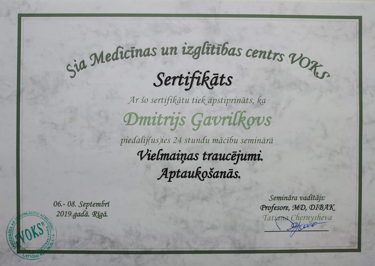 За время работы стал специалистом в патологии стопы, артроскопии коленного сустава, малоинвазивные операции при переломах голени и бедра методом interlocking. Так же внедрил в отделении новые операции, разработал собственную операцию по остеосинтезу пяточной кости при переломе по типу " Клюв попугая". В августе 2014 года по семейным обстоятельствам вернулся в Лиепаю, где успешно занимался бизнесом, но я страдал от того что не занимаюсь своим любимым делом.