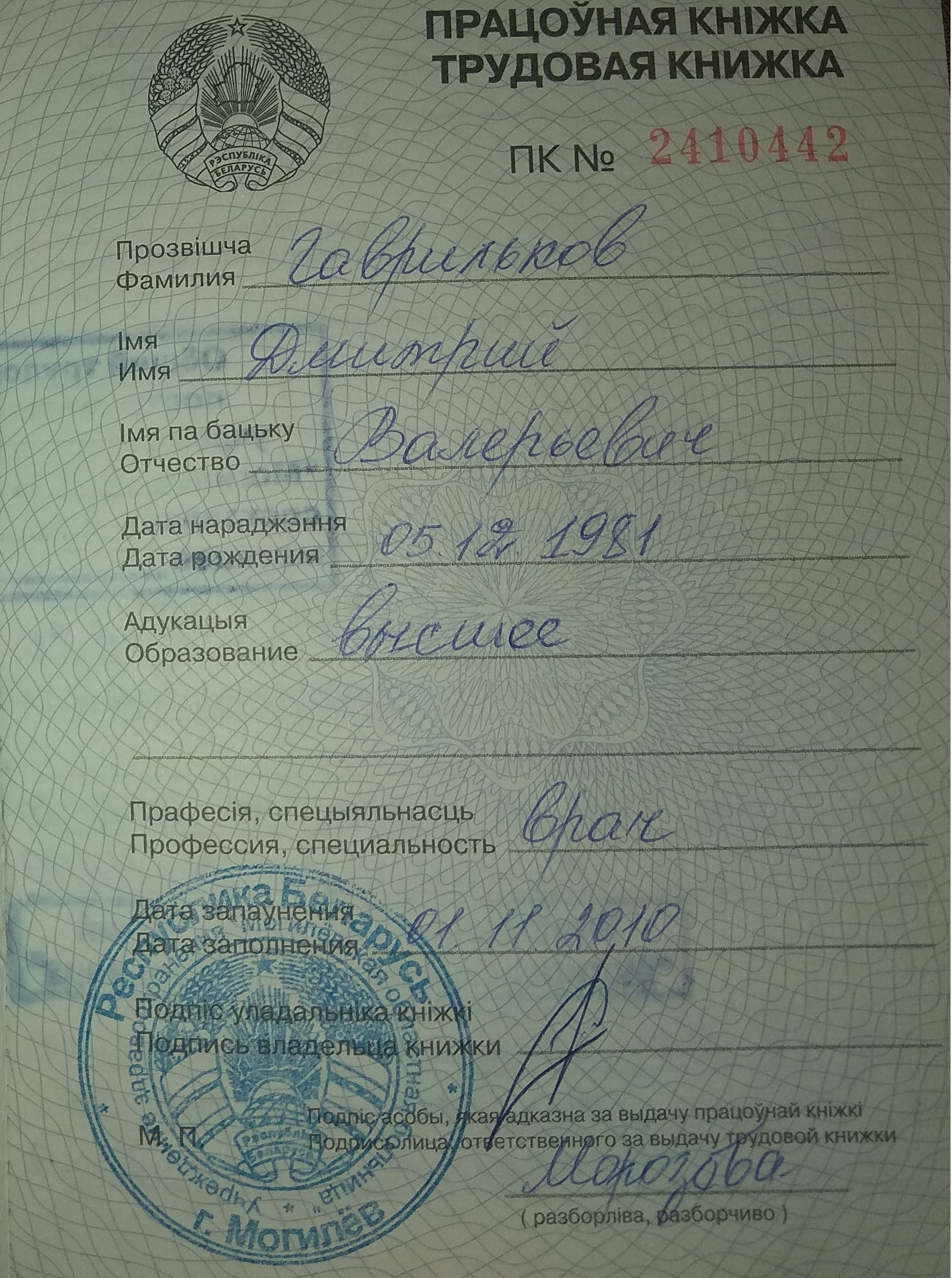 Гаврильков Дмитрий Валерьевич 1981 года рождения. Родился в Белоруссии, городе Гомеле. В дальнейшем переехал в Латвию город Лиепая, где обучался в СШ №12. В 11 классе переехал в Беларусь г. Могилев, где закончил 11 класс.