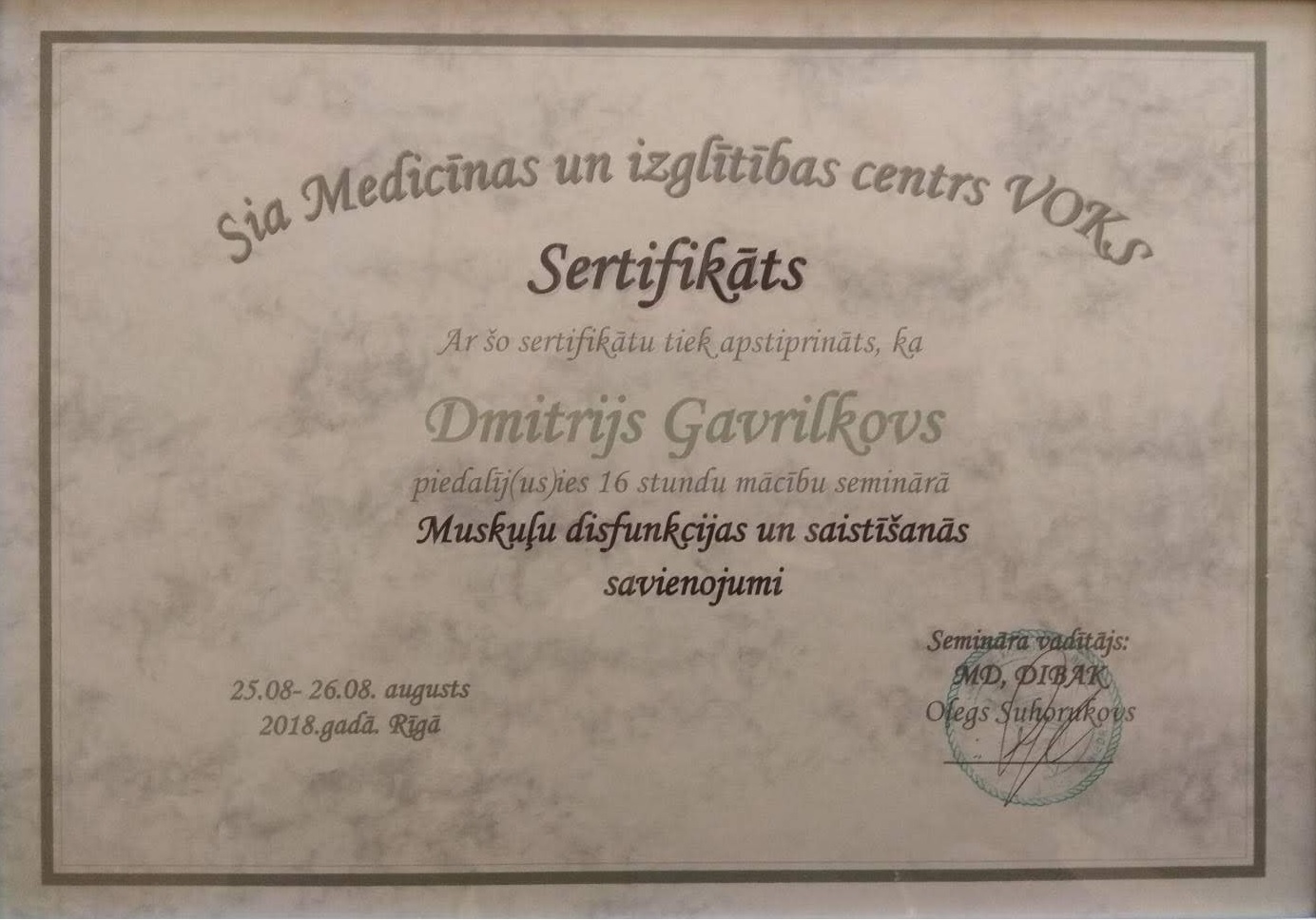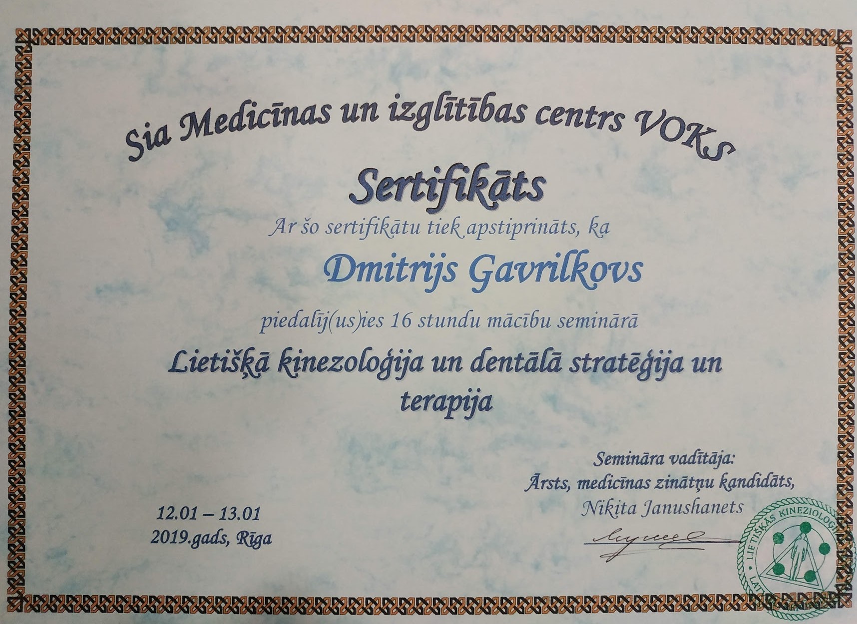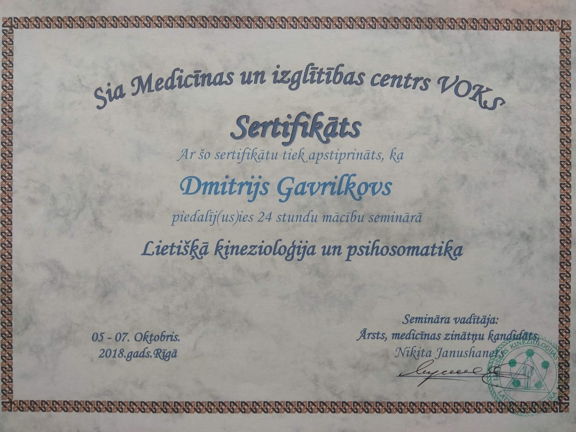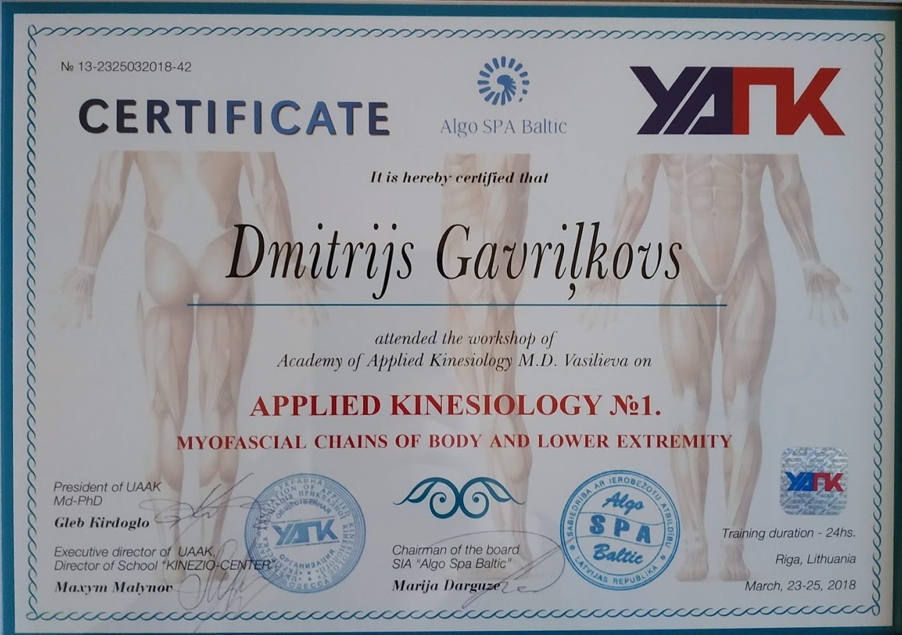 Неспособность врачей помочь жене избавиться от боли, заставила меня меня искать ответы на многие вопросы, не связанные с травматологией и ортопедией. Так я соприкоснулся с прикладной кинезиологией и занялся изучением ее глубоко и досконально. В данный момент я, не прекращаю, повышаю свой уровень знаний и профессионализма в данной сфере. Так же начал практиковать небольшие лекции или семинары об общих понятиях прикладной кинезиологии, чтобы люди могли обратиться к специалистам, которые им реально помогут и объяснят как правильно жить, питаться, тренироваться, чтобы сохранить и приумножить свое здоровье. Чтобы тренировки не вредили здоровью, а помогали стать сильнее здоровее и выносливее.